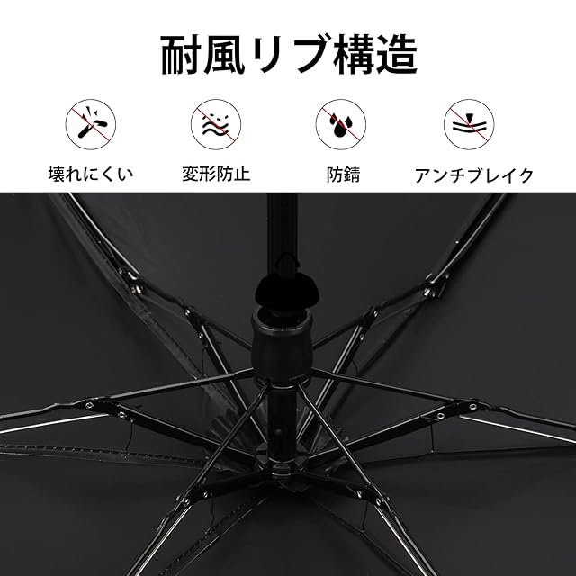【頑丈&耐風&撥水】親骨の先には強化されたアルミニウム合金製、ガラスファイバー+アルミ製6本骨を採用し、錆びにくく、しっかりした骨組みにより丈夫で壊れにくい耐風傘です!しかも軽量!傘布は撥水加工されたため、通常の日傘より撥水性があり、短時間で水切り、軽く振るだけで、水滴が簡単に振り払えます。優れた日傘としてだけではなく、梅雨対策や、急な雨にも対応できる晴雨兼用の折りたたみ傘です。