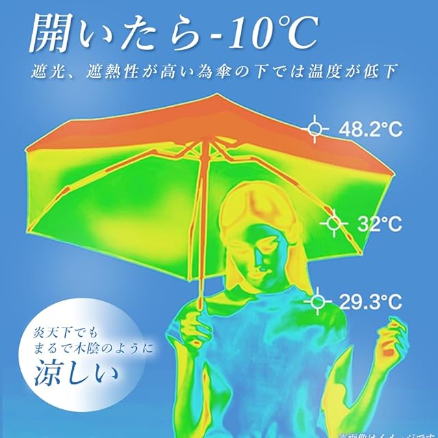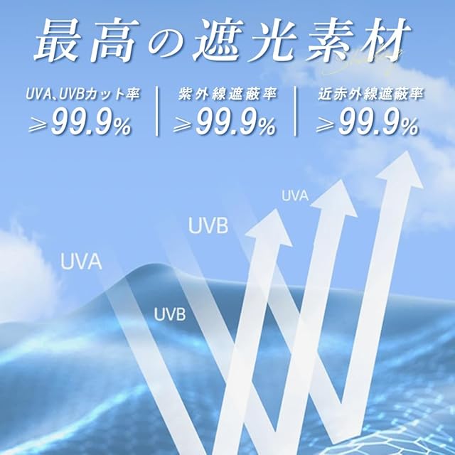 ☂【遮熱効果】室内温度23度で人工太陽光照明下30分間照射実験を行った結果、遮光生地直下に設置した熱線受光体の温度上昇は、何も遮らない状態で測定した熱線受光体の平均温度上昇と比較して、12.5~20度の温度上昇を抑制することが確認されました。(※生地の色によって温度上昇は異なる場合があります。)