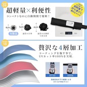 【風に強い カーボンファイバー】 従来の傘は軽量化をすれば強度が下がり、丈夫にすると重くなっていました。しかし今回の製品は超軽量生地、傘骨は軽くて丈夫なカーボンファイバーを組み合わせたフレーム。軽いだけでなく、強度や耐久性も抜群で、風速15m/sまで耐えられる丈夫なフレーム構造になっています。