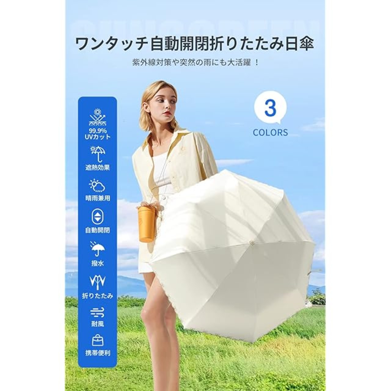 【自動開閉おりたたみ傘】ワンタッチで開閉できる、3段折りたたみ日傘。ハンドル部についているボタンを押すと自動で開き、再度ボタンを押すと閉じることができます。車 やバスを乗り降りする時や手荷物が多い時などにとても便利です。普通な通勤用カバンや車に常備しておけば、緊急天候にも対応できます。