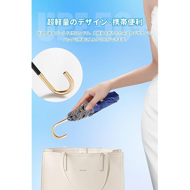 ✦【超軽量・折り畳み式・収納便利】折りたたみ日傘は折りたたみ後のサイズは29*4.5CMで、重量もわずか179-210gの軽量化を実現しました。カバンに簡単に入れて常備しても負担になりません、軽くて持ち運び便利!また、光沢のあるゴールドJ型ハンドルは、バッグや手首に掛けやすいのはもちろん、持ちやすさも抜群です。実用性とスタイリッシュさを兼ね備えています。