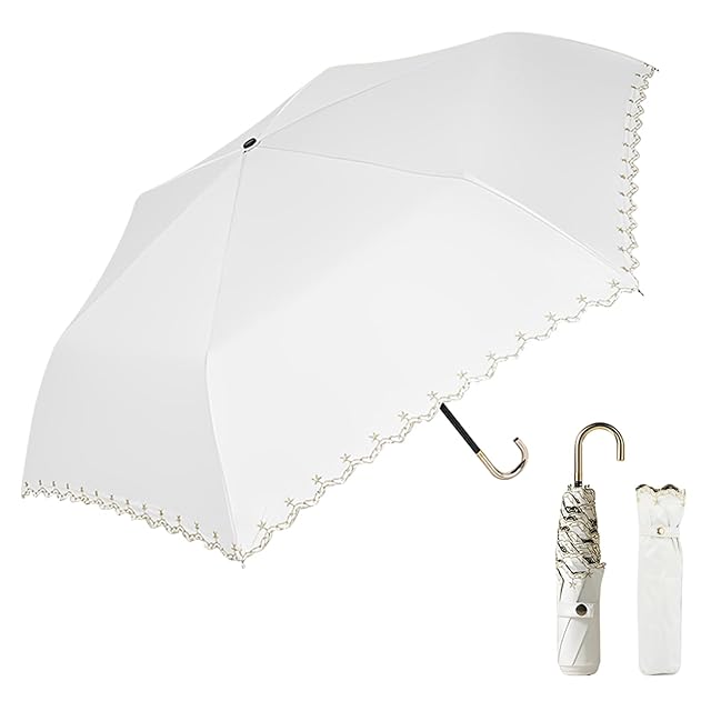 ✦【無地にレースをあしらったデザイン】無地にレースをあしらったデザインは、エレガントでモノトーンを失わない。母の日、誕生日、記念日、クリスマス、ホワイトデーギフトや卒業就職祝い、入社祝いの贈り物としてもおすすめです。通勤、通学、スポーツ観戦、夏フェス、イベント、キャンプ、遠足、アウトドア、旅行など用の折りたたみ日傘は、便利な持ち運びに便利なアイテムです。