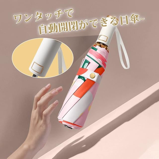 【自動開閉式折りたたみ傘】ワンタッチで自動開閉ができる日傘は、片手でも使え、とっさに傘を出して開ける際にはストレスがありません。車の乗り降りの際や、片手しかあいて無い時には大変便利です。