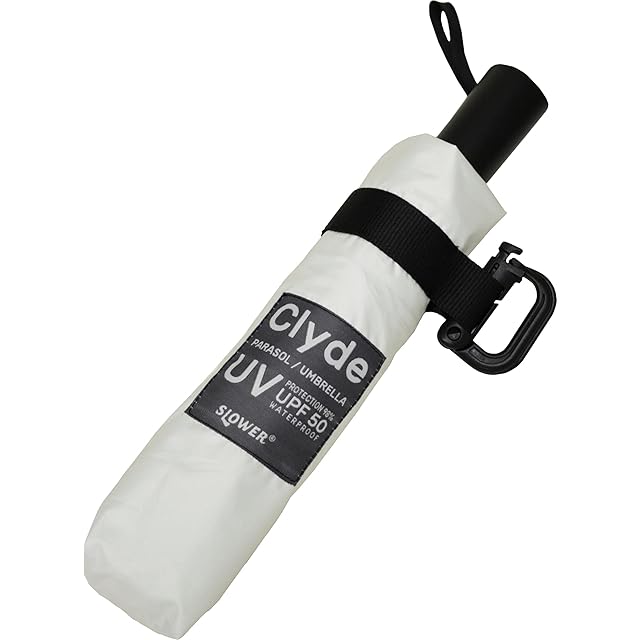 スロウワー(SLOWER) アウトドア 折りたたみ傘 雨傘 日傘 晴雨兼用 軽量 丈夫 グラスファイバー 吊り下げ カラビナフック付きケース ホワイト FOLDING UMBRELLA Clyde SLW334