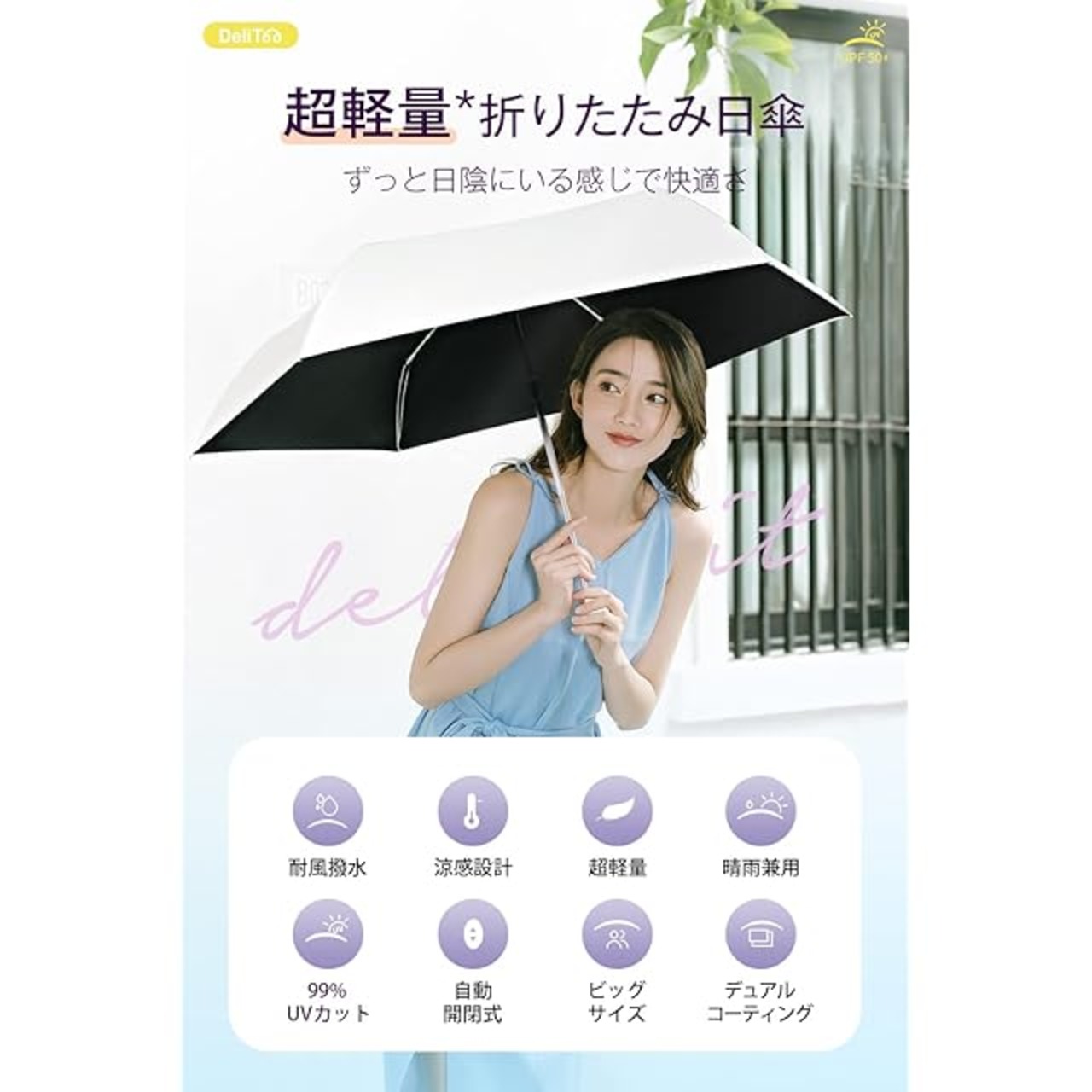 日傘 UVカット 【遮光遮熱 超軽量】 折り畳み傘 多層生地設計 紫外線遮断 ワンタッチ自動開閉 折りたたみ傘 コンパクト 熱中症対策 日焼け防止 折り畳み日傘 耐風撥水 晴雨兼用 携帯便利 レディース メンズ 折りたたみ日傘 ギフト プレゼント (ホワイト)