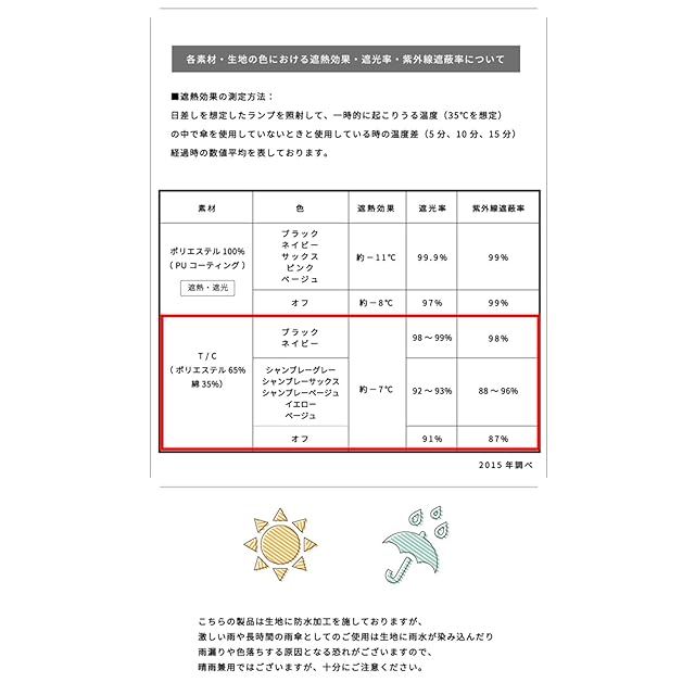 素材・材質:(本体)生地:ポリエステル65%・綿35%、(親骨)スチール、(ハンドル)合板