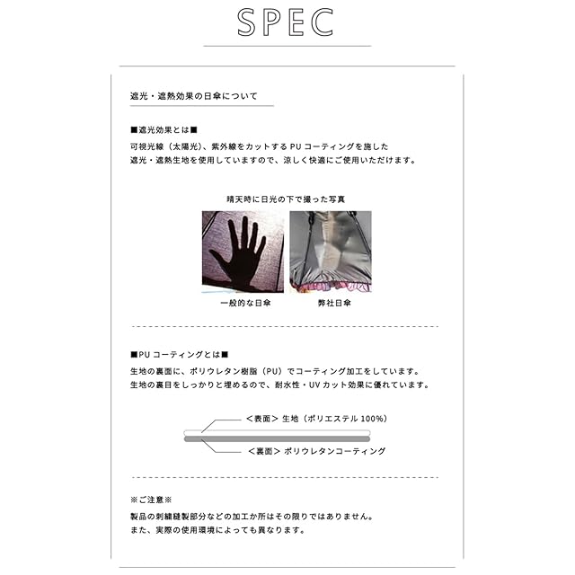 素材・材質:(本体)生地:ポリエステル65%・綿35%、(親骨)スチール、(ハンドル)アルミゴールド