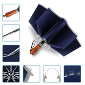 素早く自動開閉できる高級木製ハンドル:当社の傘ポータブル防風コンパクトは完全自動システムを採用しており、片手操作に最適です。 この反転傘は、ボタンを押すだけで自動的に開閉します。 また、人間工学に基づいた本物の木製ハンドルと指の切り込みにより、持ちやすく、握りやすくなっています。大きな防風ゴルフ/旅行/ビジネス用の傘です。