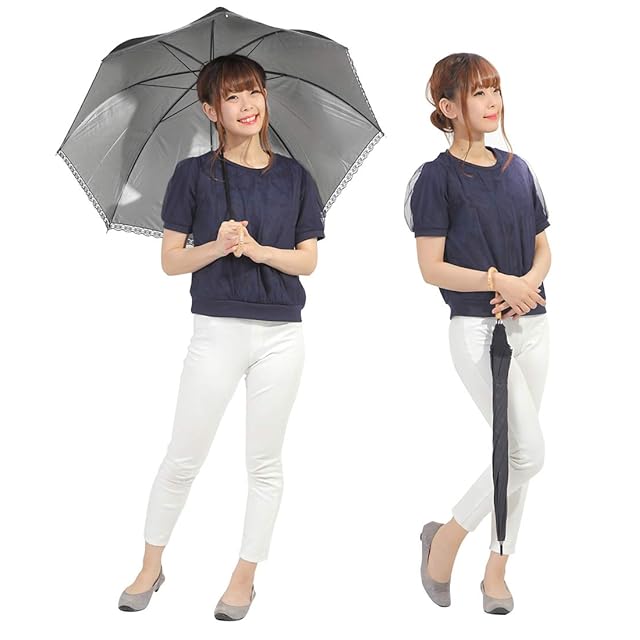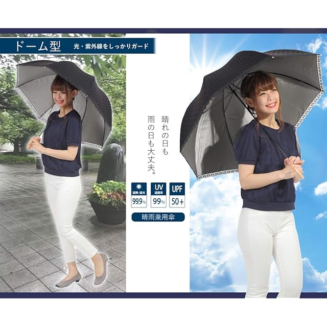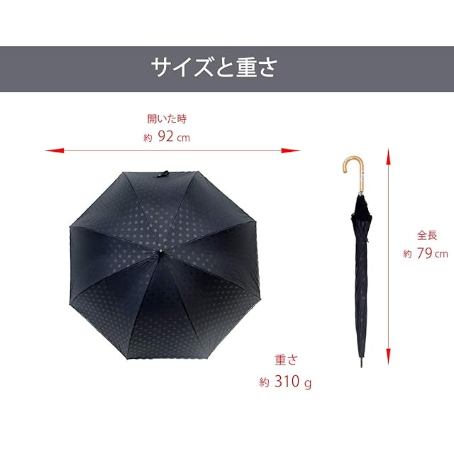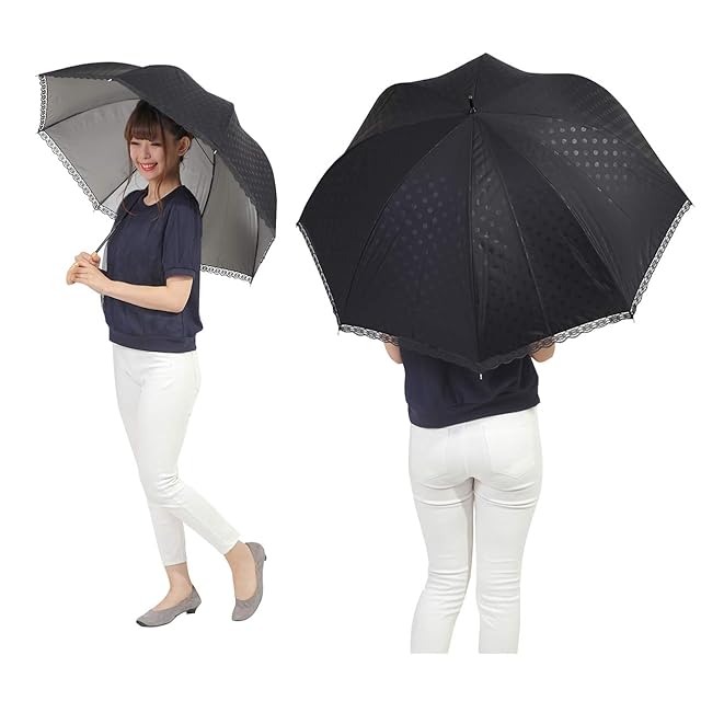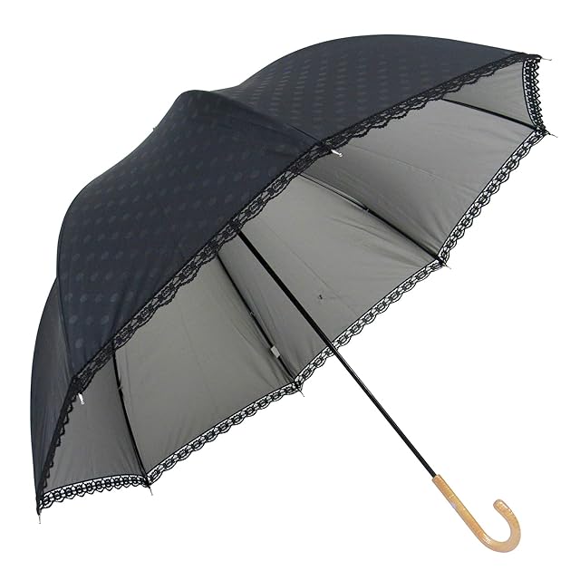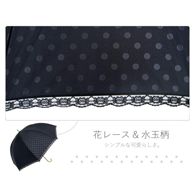 オカモト原宿店 Lサイズ 晴雨兼用 日傘 UVカット 紫外線遮蔽率99% 生地裏シルバーコーティング エンボス水玉柄 かわいいドーム型(深張仕様) 60cm 手開き傘 (エンボス水玉・黒) | ascend