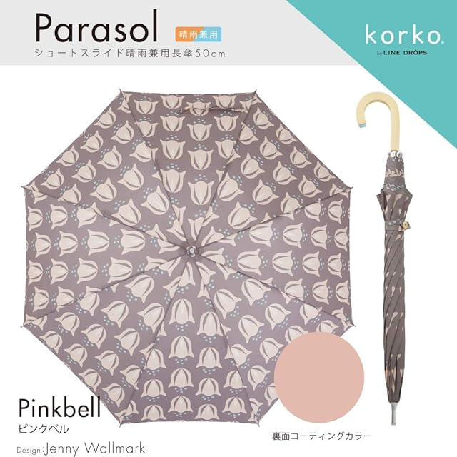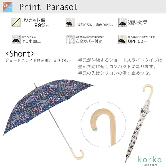 [素材]: 布地/ポリエステル100%(裏面ポリウレタンコーティング), 親骨/鉄, ハンドル/木