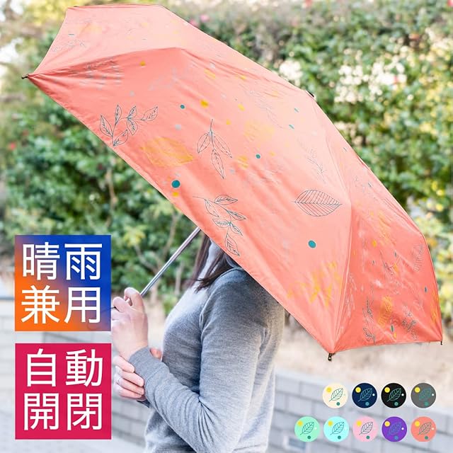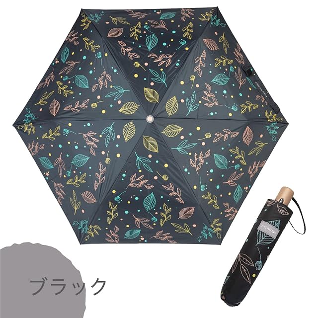 女性のための自動開閉傘【F-SEASONS 自動開閉 折り畳み傘 】 自動開閉 ワンタッチ 晴雨兼用 軽量 おしゃれ 日傘 完全遮光 女性用 レディース 傘 UPF50+ UVカット 撥水 遮光 遮熱 コンパクト 【ブラック(リーフ柄)】 | ascend