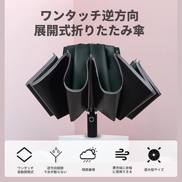 「軽く押すと自動開閉できます」。車を降りたり、子供を抱いたり、荷物を持っている時、折り畳み傘は最適です。シャフトは頑丈なステールを採用、強風にあおられても、安易に折れたり曲がったりする心配ありません。雨と風が同時に襲ってきやすい日本だからこそ、丈夫で折れにくい傘は魅力です。風をうまく受け流しながら、悪天候に負けずに使用できます。ワンタッチ開けなのでボタンを押すだけで自動的に開けます。ハンドルー体型なので袖口などに引っかからず押し心地もスムーズ。荷物の多い時や雨の時でも、ボタンを押すだけでバッと開くジャンプ傘、便利に利用できます。肩掛け仕様の収納袋も付くので、持ち運びやすいです。