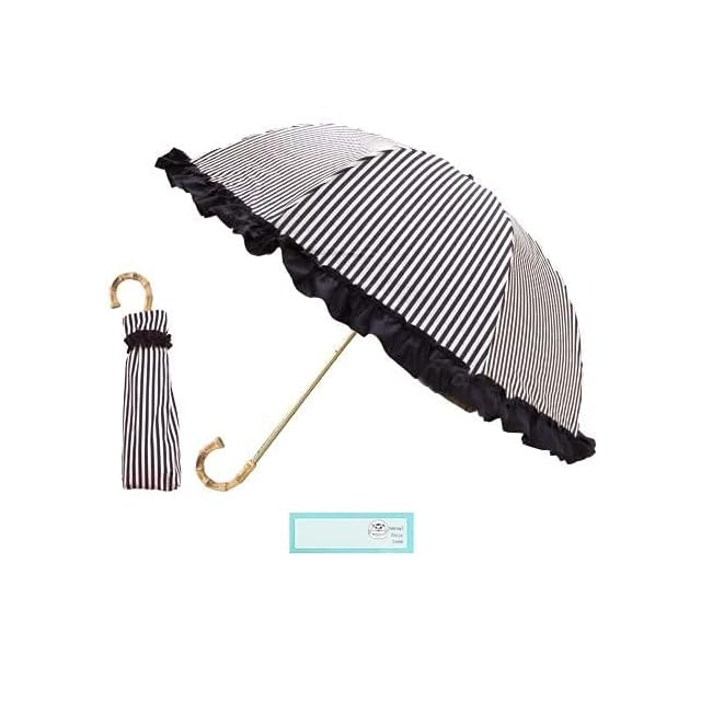 ピンクトリック 折りたたみ傘 日傘 折りたたみ 軽量 晴雨兼用 耐風 50cm UVカット 100 遮光 フリル ストライプ ネイビー 当店オリジナルロゴ入り名前シール 2点セット(折りたたみ傘、名前シール) | ascend