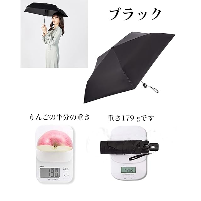 日傘 超軽量 179g ワンタッチ自動開閉 UVカット 遮光 遮熱 折りたたみ傘 コンパクト 折り畳み日傘 紫外線遮断 耐風撥水 晴雨兼用 携帯便利 メンズ レディース 母の日 父の日 (ホワイト)… (ブラック) | ascend