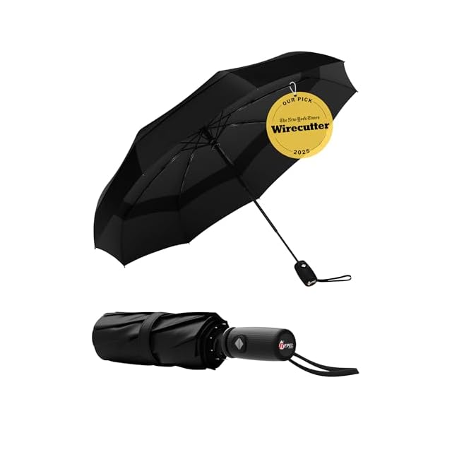 耐風&耐久性の折りたたみ傘 強風でも裏返らない二重通気キャノピー構造と9本の強化グラスファイバー製リブを採用。普通の折り畳み傘より頑丈で長持ちし、強風や大雨にも安心して使えます。