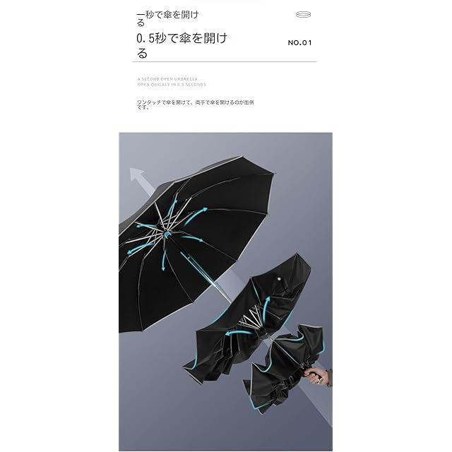 急な雨の際にあると便利な折りたたみ傘。ワンタッチ自動開閉,片手で楽!業界最新な技術を採用されています、ボタンを押すだけで傘を開いたり閉じたりできます。片手でも簡単に開閉できます。傘を閉じる時に撥ねてくる雨粒で袖が濡れる気まずさにさようなら!突然雨が降り出したけど、傘を開くのに手間取り濡れてしまったという経験がある人も多いのではないでしょうか。ワンタッチ自動開閉式なので、スピーディに開けられます。雨の日の車の乗り降り、子供を抱きかかえている時や荷物の多いときも楽です。