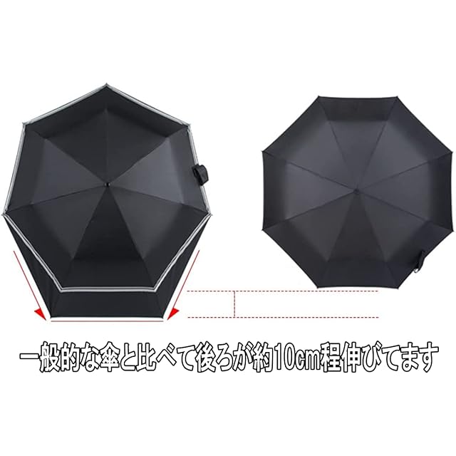 背面部が10cmほど延長された造りになっていますので背負ったリュックなどをカバーし雨や日差しから守ります。また、雨天時にしずくの落ちる位置が体から離れる事で足元への跳ね返りが軽減されます。