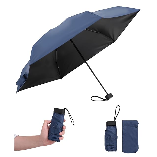 [ビジネスマン サポート] 日傘 スマホサイズ コンパクト 晴雨兼用 UVカット率 100% 完全遮光 遮熱 熱中症対策 折りたたみ傘 コンパクト 折り畳み日傘 携帯便利 メンズ レディース ネイビー | ascend