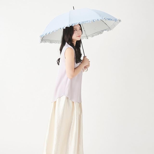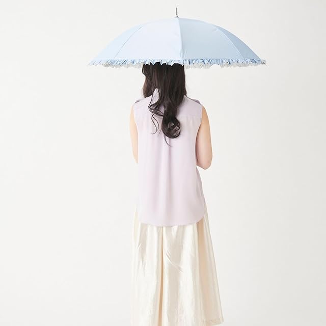 【ムーンバット】エスタ 日傘 長傘 大きいサイズ 一級遮光 UV 晴雨兼用フリル 31-230-30216 ブルー