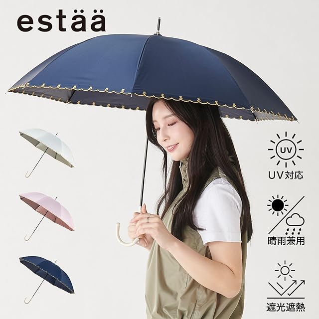 MOONBATのオリジナルブランド、estaa(エスタ)の遮光率99.99%の内側にパール加工を施し、キラキラとレフ板効果のある、晴雨兼用日傘です。