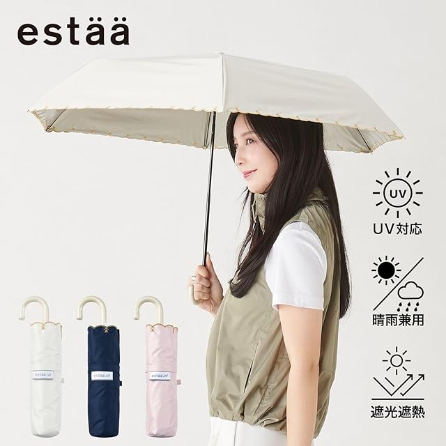MOONBATのオリジナルブランド、estaa(エスタ)の遮光率99.99%の内側にパール加工を施し、キラキラとレフ板効果のある、晴雨兼用日傘です。