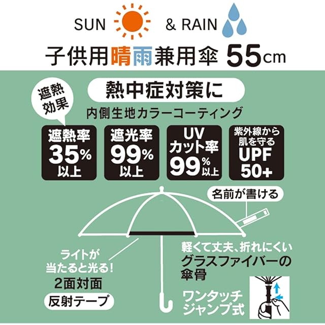 スケーター(Skater) 子供用 日傘 55cm ハッピー&スマイル レインボウ 9~10才向け 約125~135cm 小学生 ワンタッチジャンプ式 UVカット 8本骨 女の子 晴雨兼用傘 UBSR3-A | ascend