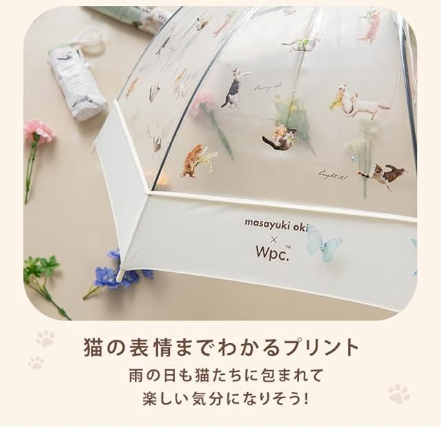 Wpc. [ビニール傘] 沖昌之×Wpc. プラスティックアンブレにゃん オフ 雨傘 長く使える 親骨61cm 大きい ジャンプ 撥水 レディース 猫 写真 おしゃれ 可愛い 映え 通勤 通学 女性 動物 どうぶつ基金 PT-OM05-001 | ascend