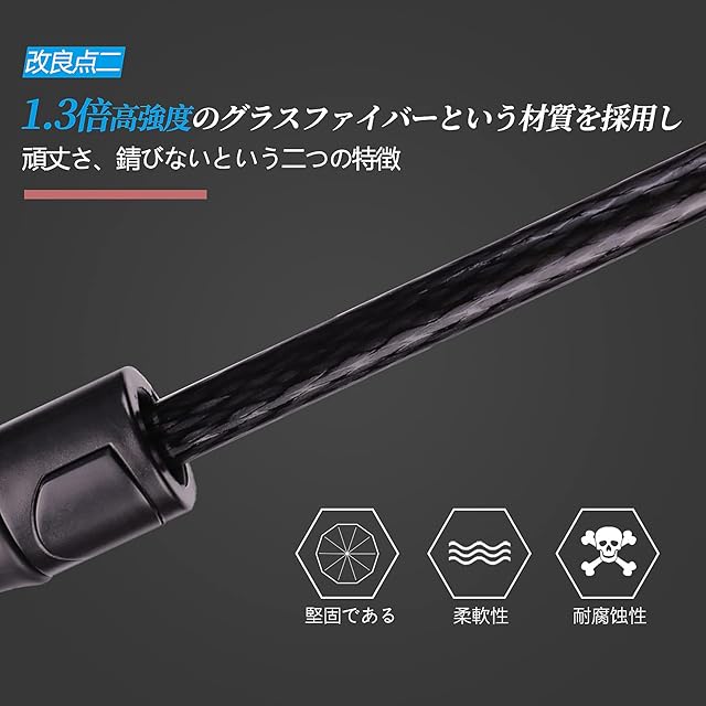 【グラスファイバー材質 】長傘の中棒には高強度のグラスファイバーという材質を採用し、頑丈さ、錆びないという二つの特徴を持ちます。それに、中棒を太くして、すこし重さがありますが、耐風性を倍に増加しており、強い風もしなやかに受け流してくれて折れにくくなっています。