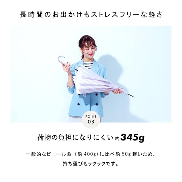 【毎日使える雨晴兼用】 この製品は、雨傘としてお使いいただくことを主としていますが、アクリルコーティングを施しているため、紫外線防止効果が見込めます。紫外線遮蔽率 淡色:約80%、濃色:約90%