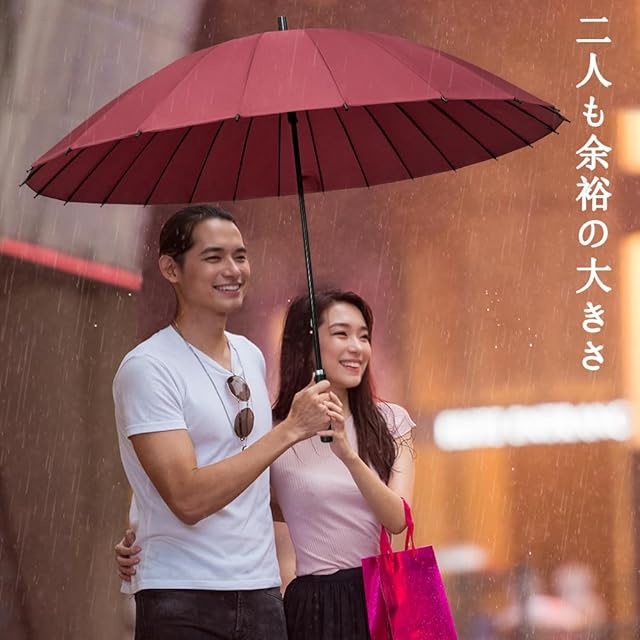 「素材構成」210t 高密度傘布を採用して、傘布にLUSコーティング防水加工をして、絶好な防水効果があります。雨水に遭うと、すぐ水滴の形になれて落ちます。傘を閉じた後、軽く振るだけで雨水が落ちることで、傘布は短時間で乾くことです。24の鋼製骨の傘は、防風効果を高め、裏返しにならないようにエレガントな丸い形状を維持できます。