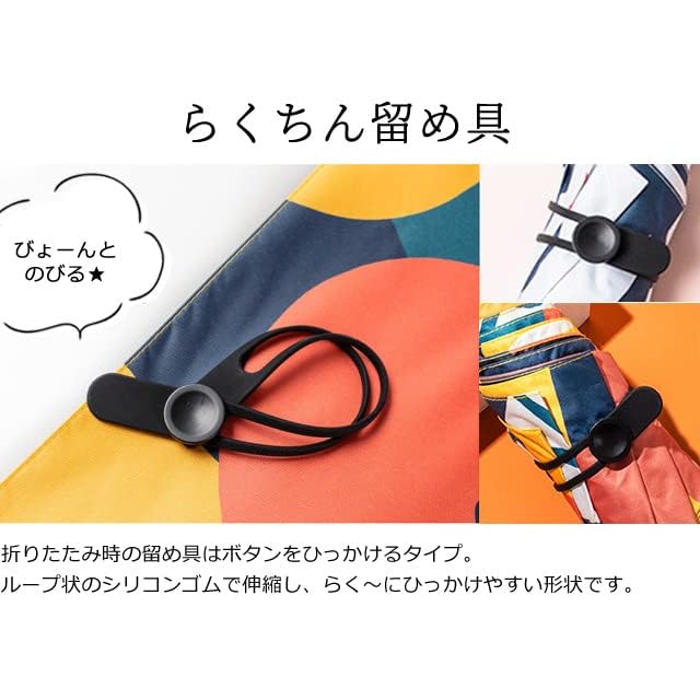 ご注意/※傘を開く時はボタンを押しますが、固定する際は、ボタンを押しながらでは固定されません。押さない状態でぐいっと押し込んで、カチと音の鳴るところで留めて下さい。※固定後、傘を閉じる時はボタンを押します。※プリント生地の裁断上、模様の位置などは、それぞれ異なる場合があります。