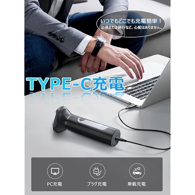 【バッテリー残量表示&Type-C充電】 電池の残量を常に確認できるLEDディスプレーが備わっています。バッテリーの管理が簡単で、いつでもシェーバーの性能を最適化できます。Type-C充電口なので、いつでもどこでも簡単に充電できます。一回のフル充電は、最大約45日ぐらい使用可能です。