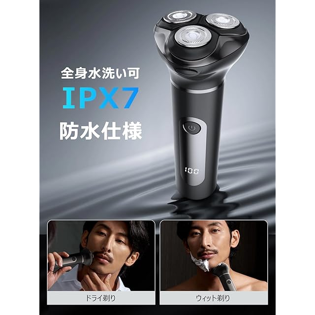 【IPX7防水機能】電気シェーバーはIPX7基準の防水設計を採用しており、水洗いが簡単に行え、清潔さを保つことができます。ドライ剃りだけでなくジェルやムースなどを使ったウェット剃りも可能で肌が弱い人でも安心して使えます。