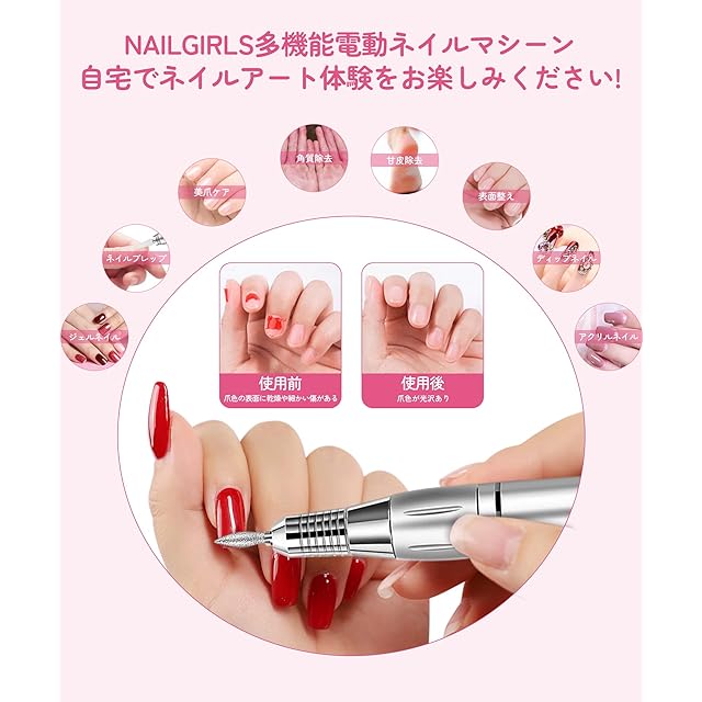 NAILGIRLS 電動ネイルマシン 11個のビット ネイルマシン 卓上式 電動ネイルケアキット ネイルケア ジェルネイルケア オフ ネイルドリルマシン 研磨 爪磨き 甘皮処理 角質除去 正逆回転 低振動 マニキュア対応 無段階変速 手足両用 35000rpm最大 自宅サロン用 | ascend