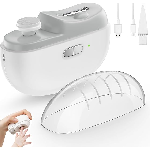 【2024最新設計2in1電動爪切り&爪磨き】この電動爪切りは、爪のカットと磨きを同時に行える便利な製品です。高品質合金で作られた45°の螺旋刃が高速回転し、アップグレードモーターと防護バー技術で指を傷つける心配なく、簡単に爪を美しく整えます。サンディングヘッドで爪を滑らかに仕上げ、内蔵の爪チップ収納庫で爪屑の飛散を防ぐため、清潔に保てます。さらに、低振動の低騒音設計(40dB)により、寝ている赤ちゃんを起こすことなく使用可能。LEDライトがヘッド付近に搭載され、暗い場所でも安心して爪のケアができます。Type-C充電ポートを採用し、1-2時間でフル充電でき、約90回使用可能な400mAhバッテリーを搭載。本体は軽量コンパクト(8.5×6.8×2.5cm、重量0.12kg)で、家庭や外出先でも持ち運びに便利です。安全設計として、爪磨きボタンと爪削りボタンを同時に2秒押してロックを解除する仕様で、子供が誤って使う心配がありません。使用後は15秒で自動オフ機能が働き、内蔵の爪屑収納ボックスで爪屑を簡単に廃棄でき、快適に使用できます。