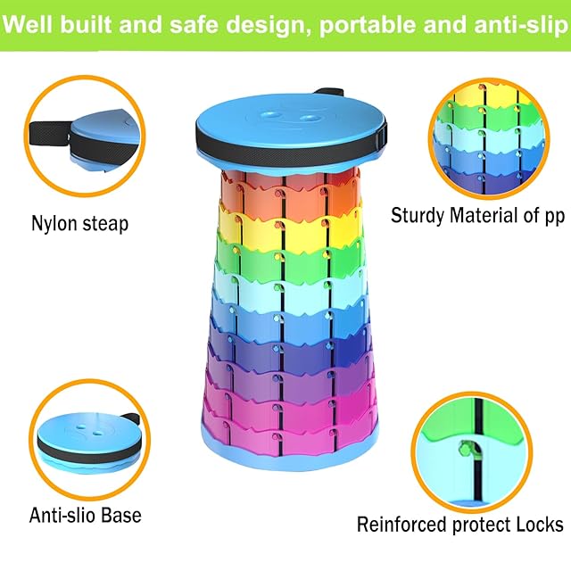『伸縮式で高度自由調節ができて持ち運びも簡単!』 簡単で素早く開閉でき、高度自由調節アウトドアチェアです。展開する前にはまるいバックの形で、全然スツールの様子に見えないです。展開する後は高度45cmの椅子になり、更に好きな高度を選択して回転して調節できます。大人から子供までお使いいただけます。持ち運び楽々の軽量設計、コンパクトに畳める伸縮スツールで、面白くて、携帯も収納も便利です!