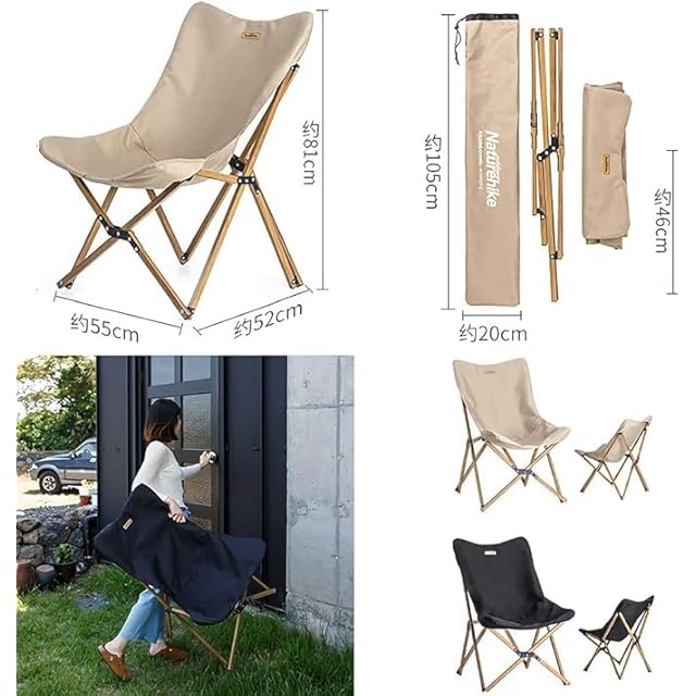 Naturehike アルミキャンプ折畳木目椅子 600Dポリエステルオックスフォード採用 木目アルミ支柱 カーツーリング ファミリーキャンプ 屋外ランチ 釣り 庭での休息に適しています 収納袋付 (黒) | ascend