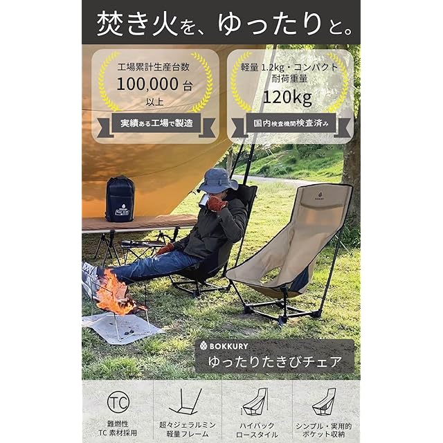 BOKKURY (ボックリー) アウトドアチェア ローチェア ハイバック あぐらチェア 軽量1.2kg コンパクト 難燃性TC素材 キャンプ ロースタイル (コヨーテ)