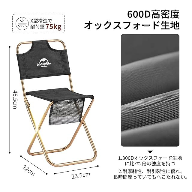 Naturehike公式ショップ 折りたたみ椅子 アウトドアチェア 超軽量 耐荷重75kg 背もたれ キャンプ椅子 コンパクト イス 収納バッグ付 お釣り 登山 ピクニック ハイキング ビーチ バーベキュー | ascend