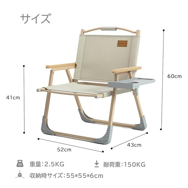 ❤【商品仕様】アウトドア チェア本体サイズ:(約)52*43*60cm、材質:ポリエステル(オックスフォード織)、アルミニウム合金(フレーム)、ビーチ材(ひじ掛け)