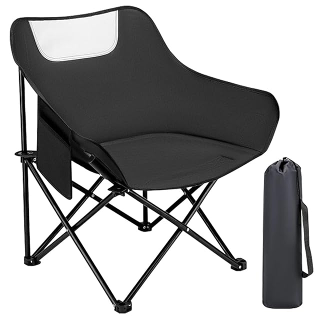 Glvaner アウトドア椅子 キャンプチェア 折りたたみ 安定性 コンパクト ハイバックチェア ムーンレンスチェア bbq 椅子 携帯便利 座面高47cm 耐荷重150kg 超軽量 ハイキング 登山 お花見 お釣り バーベキュー サイドポケット 収納バッグ付き (ブラック)