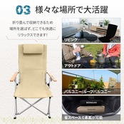 キャンプをより快適に過ごせる折り畳み式アウトドアチェアです。フカフカで厚みのあるヘッドレストが付いており、頭や首を優しく支えるため一休みしたいときにピッタリです。長時間座っていても腰やお尻が痛くなりにくい座り心地の良さを実現しました。
