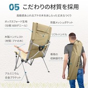 一般的なアウトドアチェアとは異なり、背もたれが長めに設計されているため身体全体を預けられます。さらに背もたれは角度を4段階に調節可能です。座った状態で肘掛け部分を動かすことで簡単に動かせられるので、お好みのタイミングで調整していただけます。