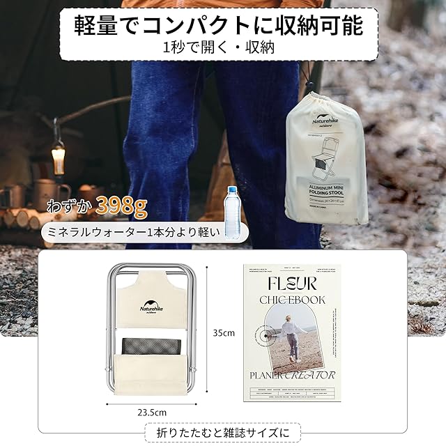Naturehike直営店 折りたたみ椅子 アウトドアチェア キャンプ椅子 超軽量 コンパクト 背もたれ付き 耐荷重75kg 収納バッグ付 ミニ 登山 イス ピクニック ハイキング バーベキュー ベージュ | ascend