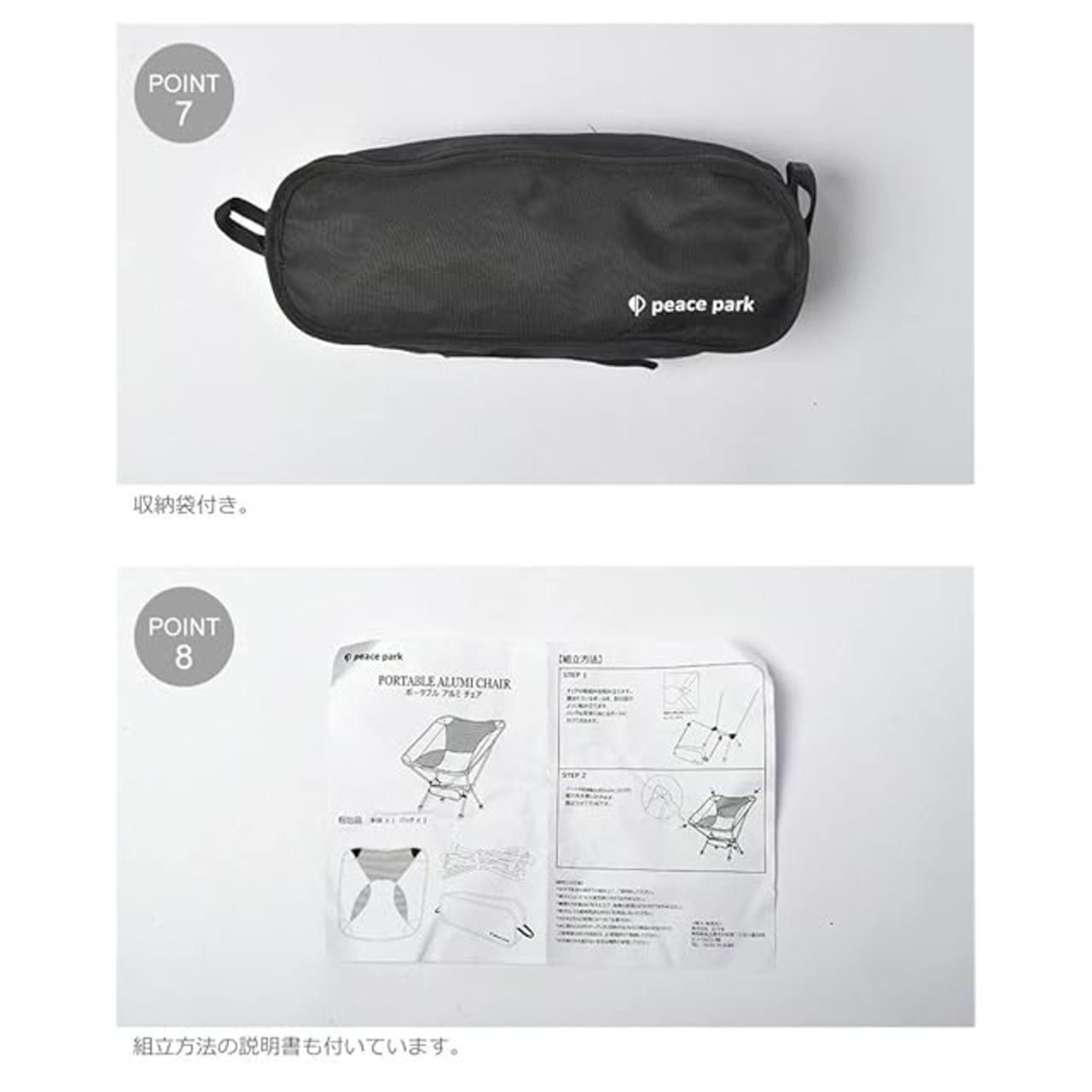 ピースパーク 超軽量 折り畳みチェア キャンプチェア アウトドアチェア ポータブルアルミチェア 収納バッグ付