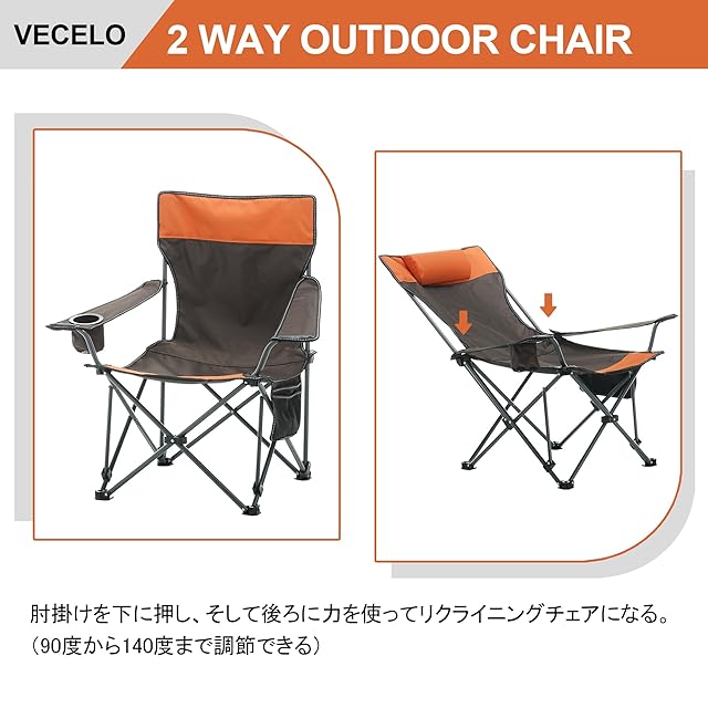 VECELO アウトドアチェア アウトドア 折りたたみ椅子 コンパクトチェア キャンプ椅子 キャンプチェア ひんやり生地 軽量 椅子 カップホルダー付き ポケット付き ソロキャンプ リクライニングチェア 完成品 収束式 収納袋付属 携帯便利 耐荷重150kg お釣り 登山 お花見 ハイバック | ascend