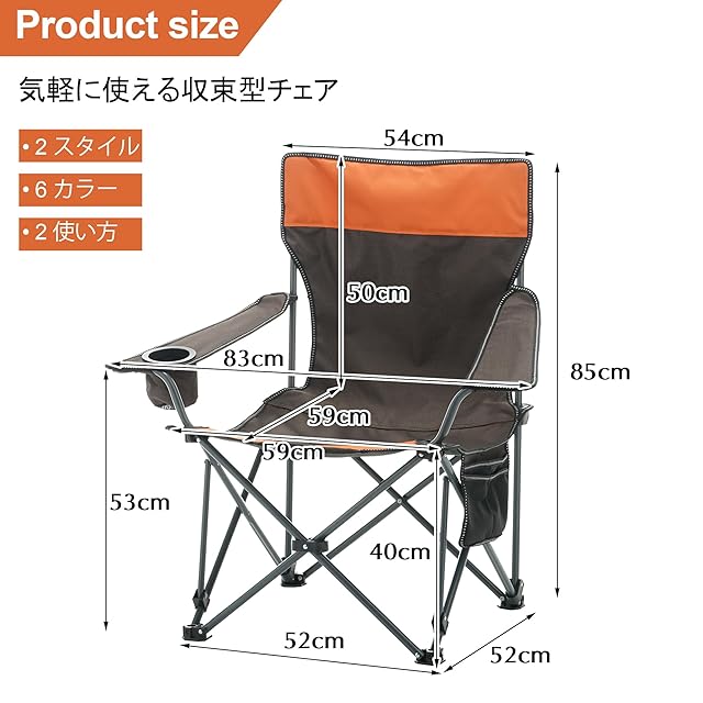 【完成品&コンパクト収納】 組み立ての手間は一切不要、お客様のために完成されたチェアで、アウトドアの時間をもっと快適でリラックスしたものにします。 手間いらずの収納、30秒で完了!さらに、便利な収納バッグも付属。忙しいスケジュールに合わせて、瞬時にご使用いただけます。この折りたたみ椅子は、手軽さと便利さを提供して、キャンプやピクニックなどに最適で、心地よいくつろぎの時間をお楽しみください。