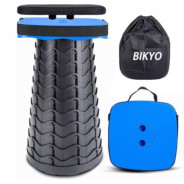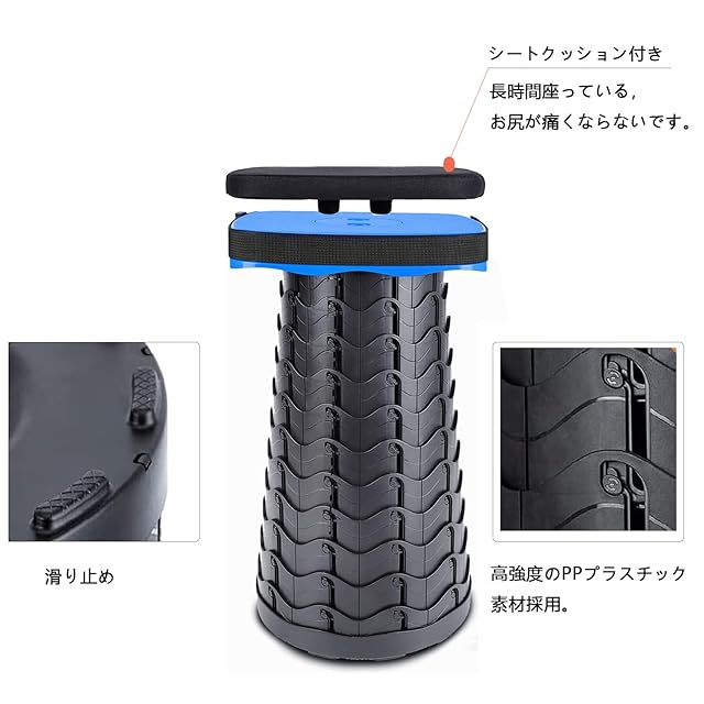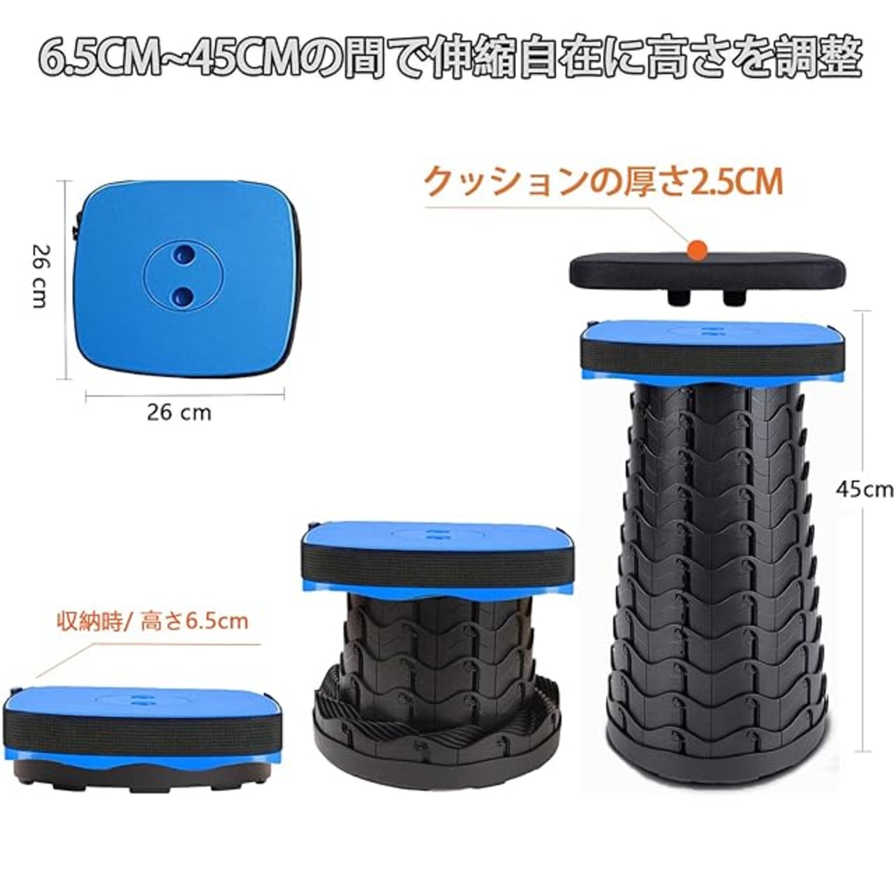 BIKYO 折りたたみ椅子 アウトドアチェア伸縮式 キャンプ椅子 折り畳み式 キャンプスツール 軽量 コンパクト 持ち運び便利 耐荷重220KG 一秒開閉でき 高さ調整可能 6.5-45CM 滑り止め 【意匠登録】シートクッション 収納バッグ付き (青+角型 + シートクッション) | ascend