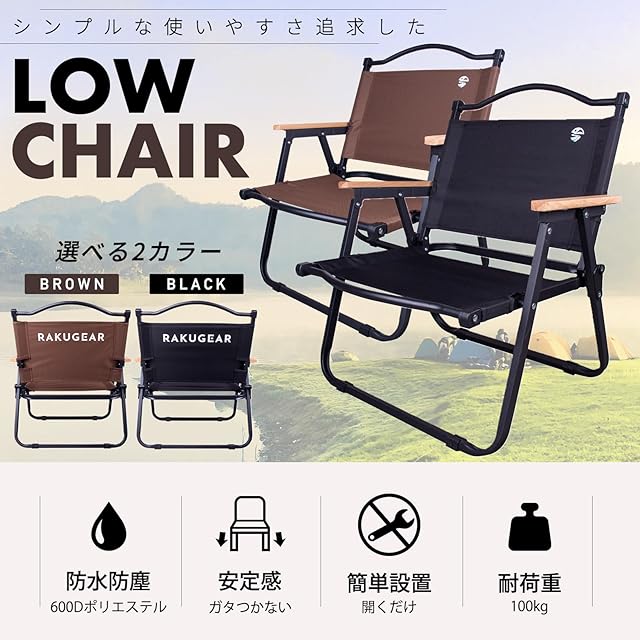 【シンプルに使いやすい】防水防塵600Dポリエステル素材、耐荷重100kgでガタつかない安定感で安心安全。ベランダや子供用ローチェアにも。