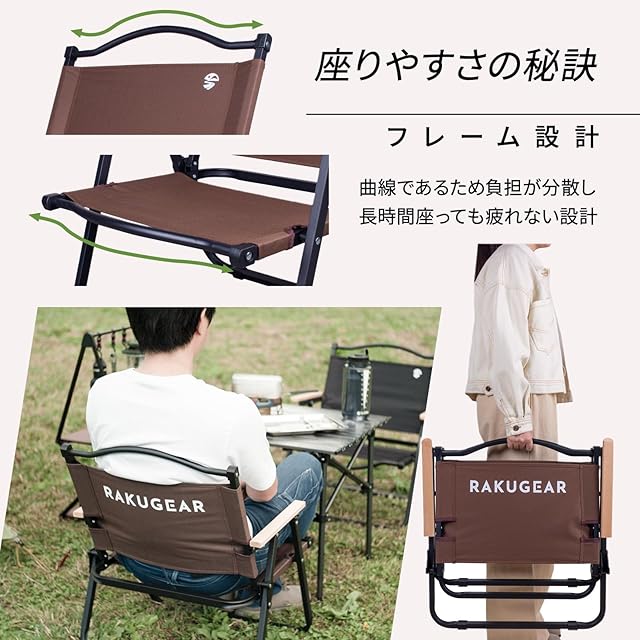【座りやすさの秘訣】曲線フレーム設計であるため負荷が分散し長時間楽に座っていられます。